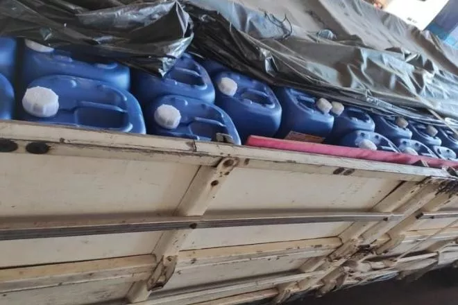 A Polícia Federal e a Receita Federal do Brasil apreendeu na tarde desta segunda-feira (27), 25 toneladas de peroxido de hidrogênio, insumo químico controlado, que é utilizado no refino da cocaína.