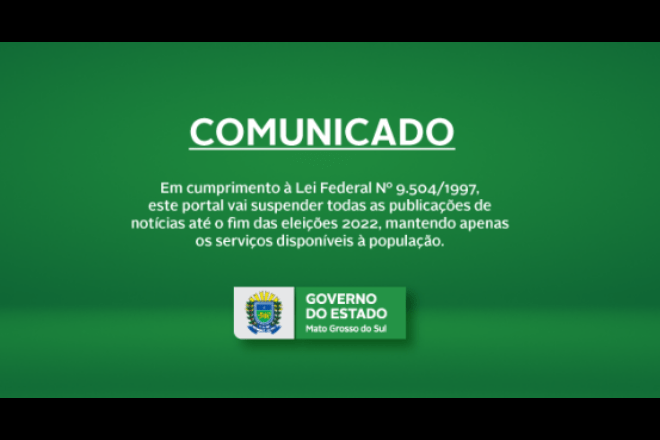 Em cumprimento à Lei Federal nº9.504/1997, este portal vai suspender todas as publicações de notícias até o fim das eleições de 2022, mantendo apenas os serviços disponíveis à população”, diz comunicado da Secretaria de Estado de Justiça e Segurança Pública de Mato Grosso do Sul (Sejusp).