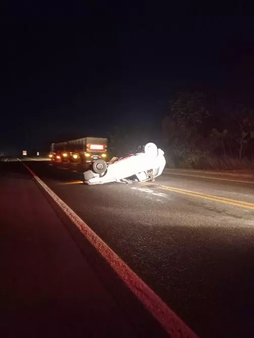 Um motorista capotou o veículo que conduzia durante a madrugada desta quarta-feira (13), na BR-163 sentido Sonora, a 351 quilômetros de Campo Grande, após atropelar uma anta. Um dos ocupantes do  teve parte do couro cabeludo arrancado.
