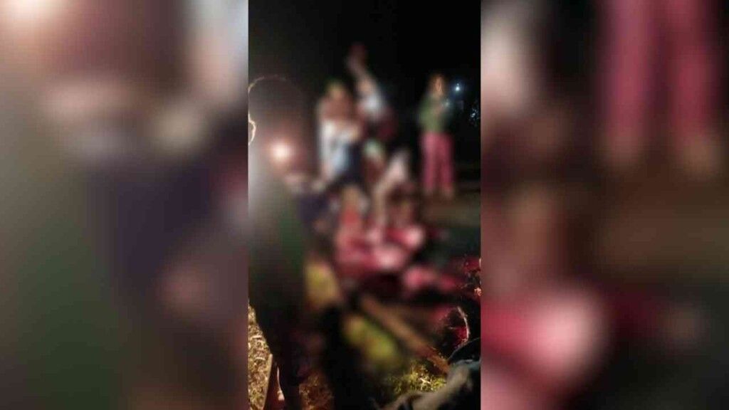 Imagens enviada à reportagem do Jornal Midiamax mostram o momento em que acontece o corte do animal em várias partes. Nos áudios há falas de crianças e risadas de adultos.