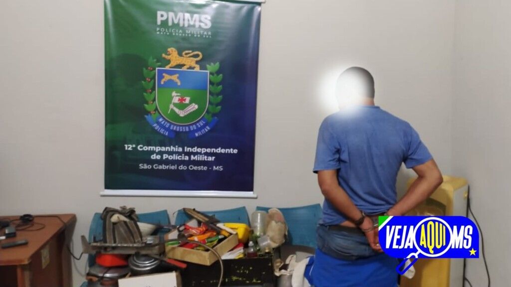 Homem é preso em São Gabriel do Oeste após arrombar caixa de cozinha de caminhão.