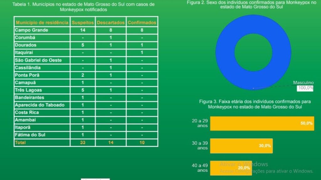 Com o passar dos dias, é notado o avanço da varíola dos macacos em Mato Grosso do Sul. Conforme boletim epidemiológico divulgado nesta terça-feira (16) pela SES (Secretaria de Estado de Saúde), nas últimas 24 horas o Estado registrou 9 novos casos suspeitos da doença, que chega a um total de 33.