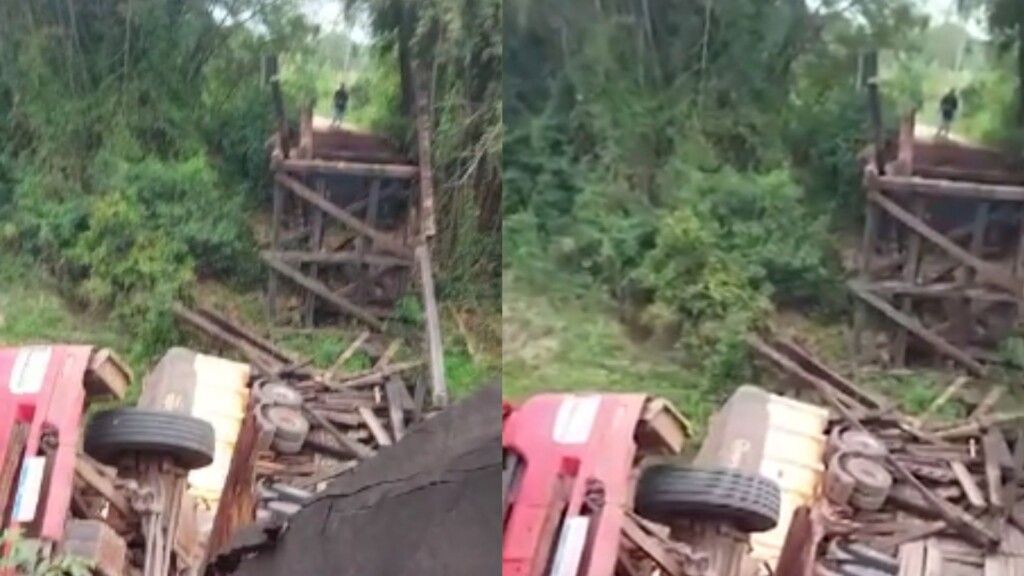 Na tarde desta quinta-feira (06), a ponte sobre o rio do Peixe, no município de Bonito, desmoronou. O acidente envolveu uma carreta carregada de calcário que passava pela ponte no momento em que ela quebrou. O motorista sobreviveu e aparece bem nas imagens gravadas.