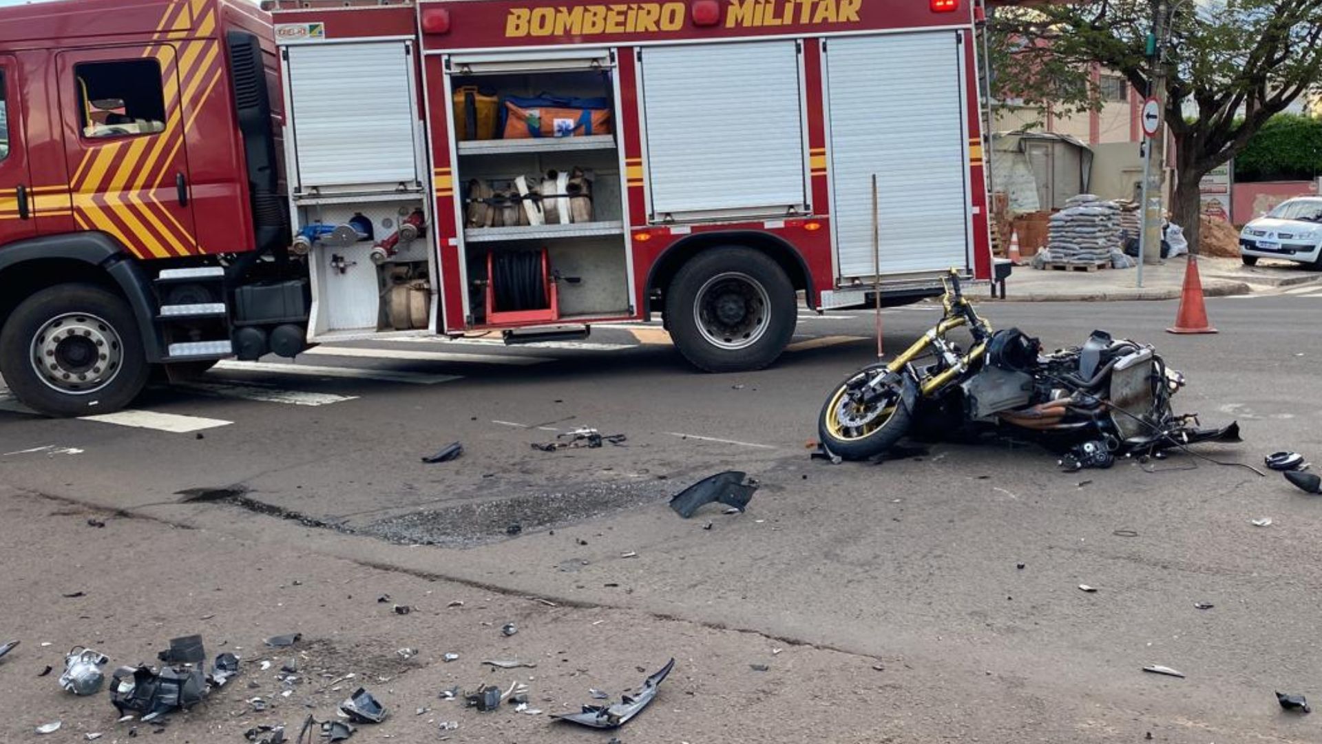 Motociclista fica estado em grave após bater em carro que fez conversão proibida