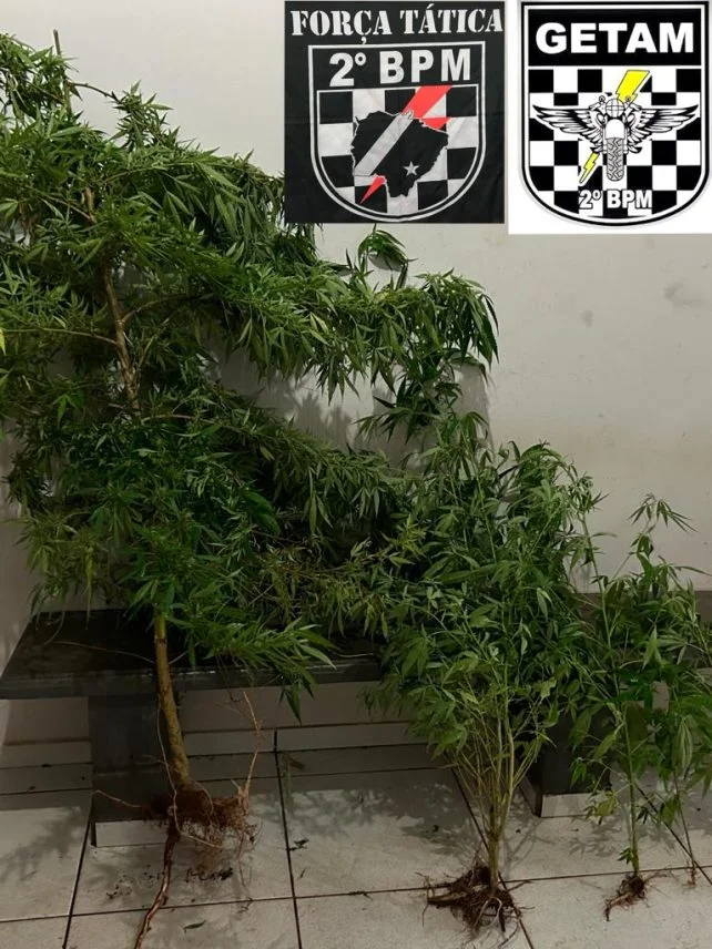 Nesta segunda-feira, por volta das 19h30, a guarnição da Força Tática e do GETAM do 2º Batalhão durante rondas pelo bairro Bosque das Araras, local alvo de denúncias versando a existência de tráfico de drogas na Rua Arara Azul, visualizaram um casal defronte a residência delatada os quais ao perceberem a aproximação policial demonstraram suspeição sendo abordados. Durante a abordagem o casal informou aos policiais que havia vários pés de maconha plantados no quintal, droga essa para venda e uso pessoal.