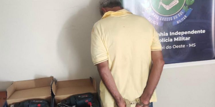 Um idoso suspeito de furtar duas furadeiras em uma loja de ferramentas em Coxim, foi preso nesta manhã (24) em São Gabriel do Oeste. Ele foi flagrado pelo circuito de câmaras do estabelecimento, após entrar no local com uma caixa de papelão vazia e sair com as ferramentas avaliadas em R$1200 reais.