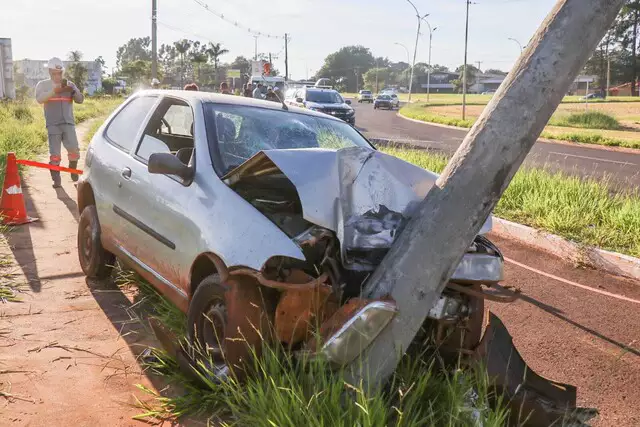 Conforme apurado pela reportagem, o motorista seguia em um Fiat Pálio, de cor cinza, sentido bairro e tinha como passageiros três pessoas: a idosa, a gestante e um rapaz de 21 anos, quando perdeu o controle da direção na rotatória, invadiu a ciclovia e colidiu contra o poste. A estrutura foi totalmente danificada e ficou pendurada pelos fios.