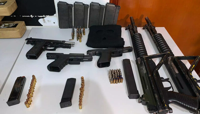 Nesta manhã, as equipes entraram nas casas e em duas delas encontraram dois fuzis calibre 762 importado e três pistolas, sendo duas .40 e uma 9 milímetros que estava preparada com seletor de rajada.