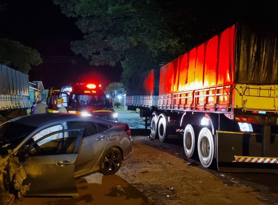 Mulher de 37 anos colide em carreta parada no centro de São Gabriel do Oeste