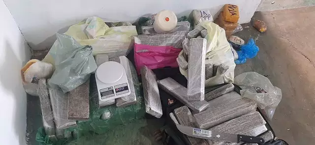 A jovem, que já tem passagens por tráfico, morava em uma casa na Rua das Perdizes, paralela a Rua Indianapolis onde fica a penitenciária. No local, foram encontrados 91,4 kg de maconha, além de três balanças de precisão, facão, celular e diversas embalagens de pino e saquinhos e dosador.