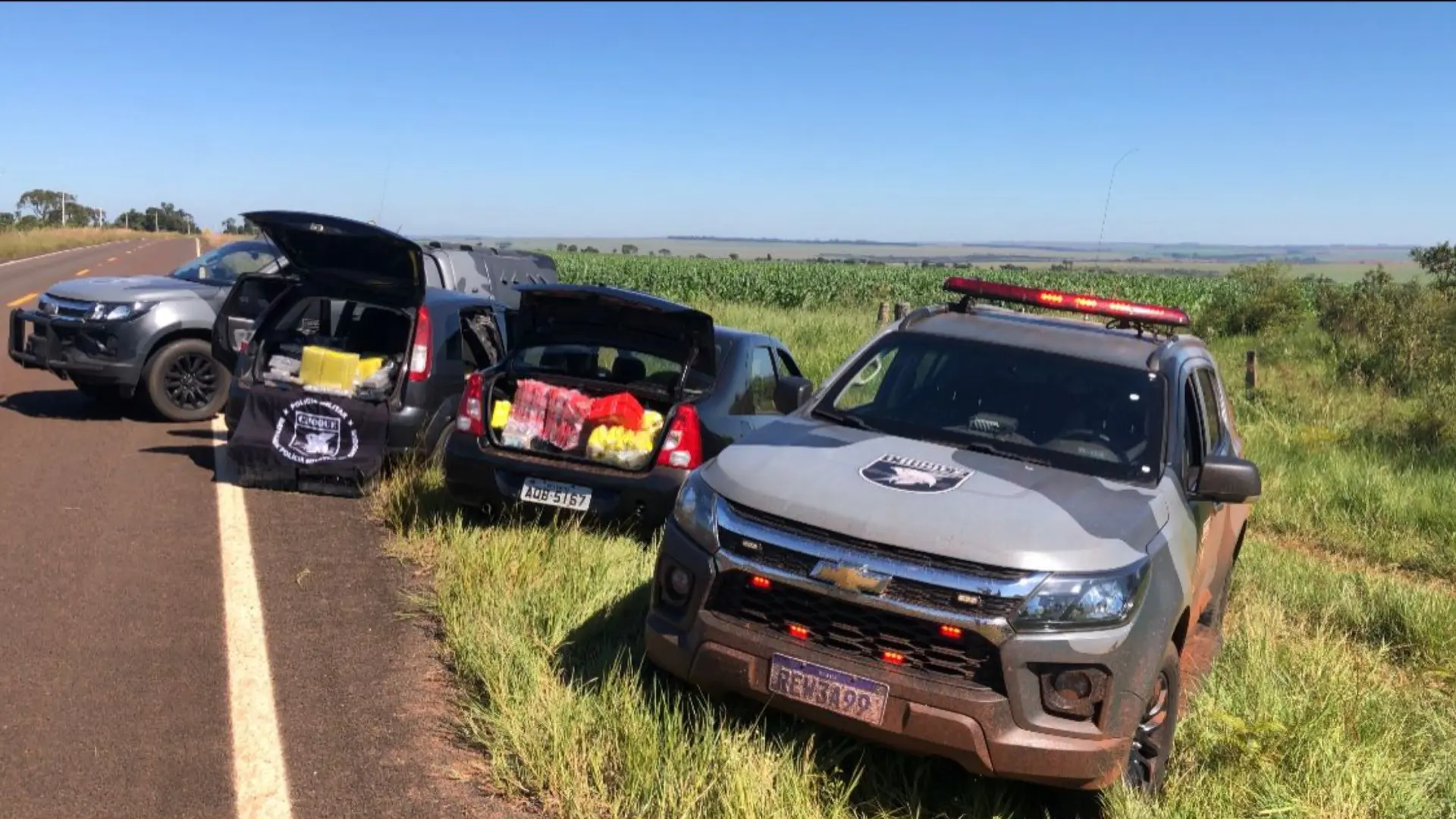 Durante a perseguição, ele abandonou o carro e tentou fugir a pé, quando disparou contra os militares. Os policiais revidaram e atingiram o traficante, que morreu. Os autores estavam transportando cerca de 490 quilos de maconha, avaliada em R$ 630 mil.