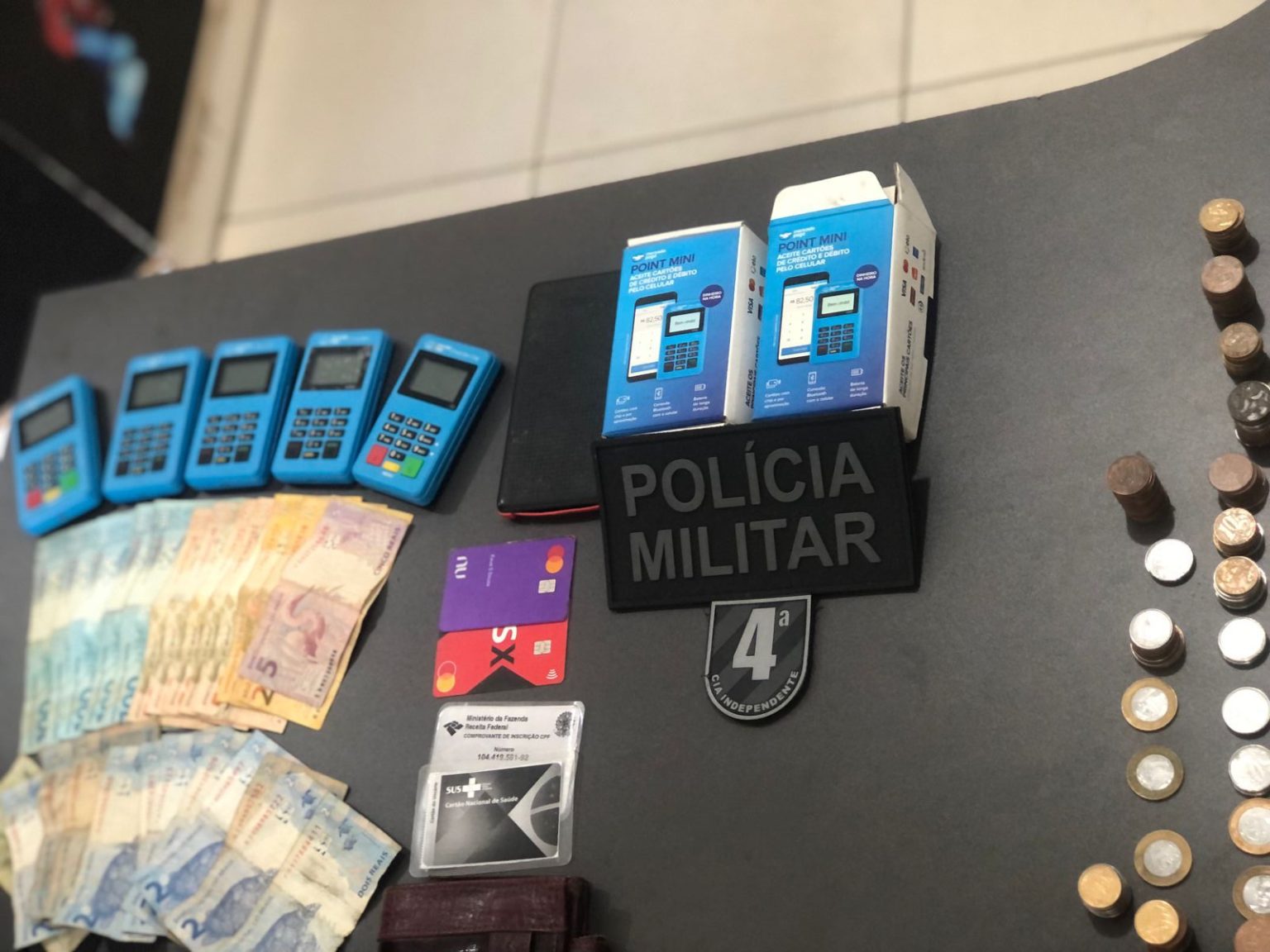Foram iniciadas diligências no intuito de localizar o autor, porém o mesmo se evadiu tomando rumo ignorado deixando sua residência toda revirada, onde foi encontrada grande quantia em dinheiro, cinco maquininhas de cartão e diversos documentos pessoais, provenientes do comércio de drogas realizado no local.