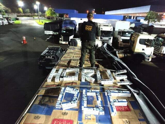 O DOF (Departamento de Operações de Fronteira) apreendeu na madrugada deste sábado uma carreta semirreboque abandonada pelo condutor com 45 mil pacotes de cigarros contrabandeados do Paraguai. A carga é avaliada em R$ 2,6 milhões.