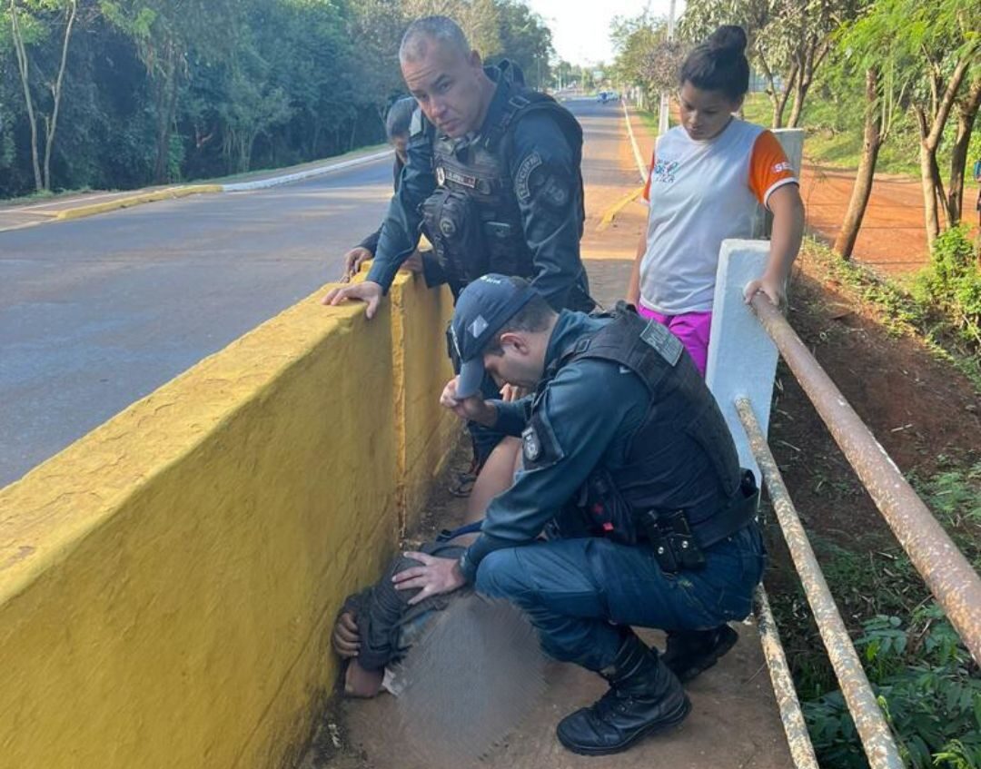 Três policiais militares de São Gabriel do Oeste impediram que mulher tirasse a própria vida, pulando de uma ponte. O fato ocorreu na manhã do último sábado(24) por volta das 8:15hs quando a mãe da mulher acionou a polícia militar via 190 informando que sua filha estava tentando se jogar da ponte que liga o centro ao bairro Jardim Gramado pela venida Mato Grosso do Sul, ainda de acordo com a mãe da vítima, a filha estava sendo atendida no Hospital Municipal e teve um surto, abandonando o atendimento e correu em direção a ponte, afirmando que iria se matar.