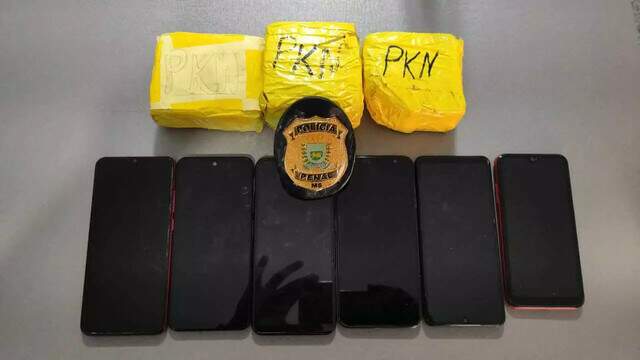 Nas sacolas foram encontrados cerca de 900g de maconha, celulares, carregadores, fones de ouvidos e até latas de bebidas que foram embrulhadas em pedaços de estofados, para que chegassem em boas condições.