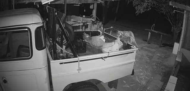 Ainda conforme proprietário do veículo, a “jaguatirica sem vergonha” chegou no local por volta das 21h30, mas acabou se assustando com a luz e fugiu sem a carne roubada.
