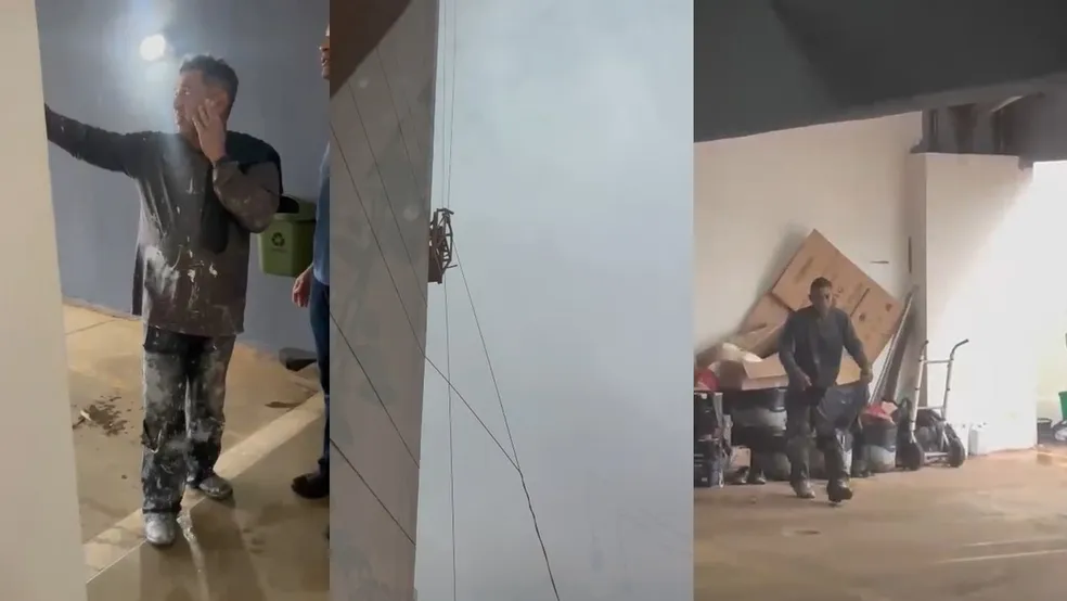 No vídeo é possível ver as cordas do andaime balançando com o vento forte. Não é possível ver os pintores, mas moradores do prédio afirmam que os trabalhadores estavam no local durante a gravação.