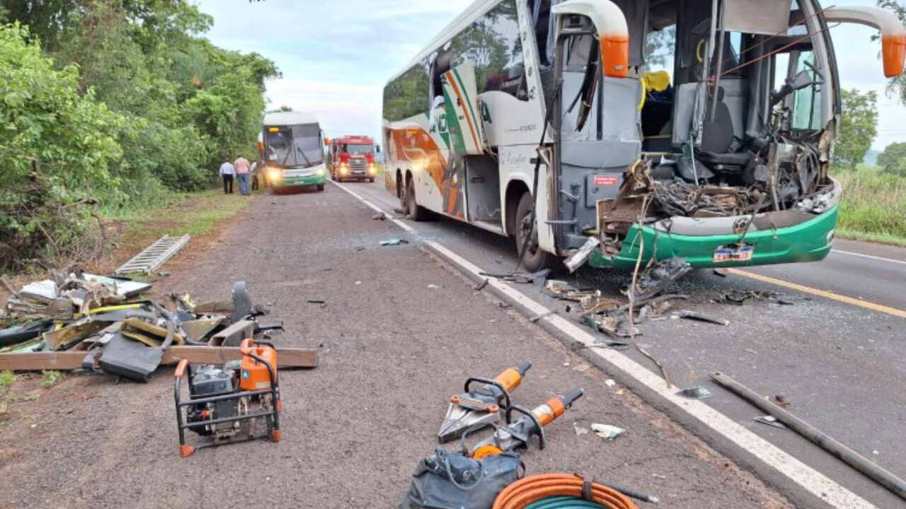De acordo com a PRF (Polícia Rodoviária Federal), o ônibus, da empresa Andorinha e a serviço da secretaria de saúde de Corumbá, bateu atrás da carreta que estava carregada. O motorista do ônibus ficou em estado grave.