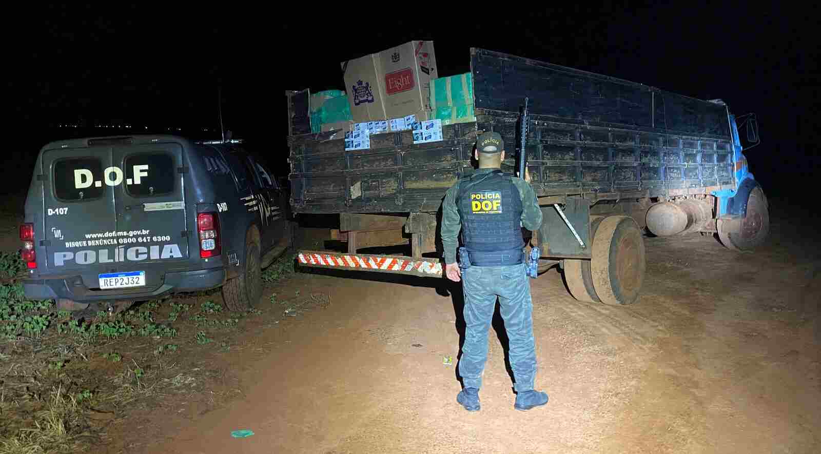 Agentes do DOF (Departamento de Operações de Fronteira) apreenderam na noite dessa quarta-feira (29), na MS-299, em Mundo Novo, um caminhão Mercedes Benz carregado com mais de seis mil pacotes de cigarros contrabandeados do Paraguai.