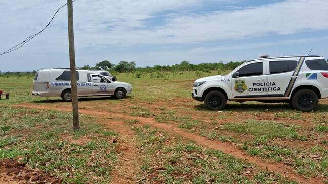 Equipes da Polícia Civil e a Perícia foram acionadas e ao chegar na fazenda constataram o crime. No local foi encontrada uma enxada com manchas de sangue e uma faca. O caso foi registrado como homicídio simples. O suspeito fugiu do local.