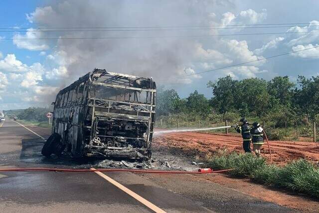 Após apresentar falha mecânica, um ônibus pegou fogo e ficou completamente destruído, na tarde desta sexta-feira (1º), na MS-338, entre as cidades de Santa Rita do Pardo e Bataguassu. Apesar do susto, ninguém ficou ferido.
