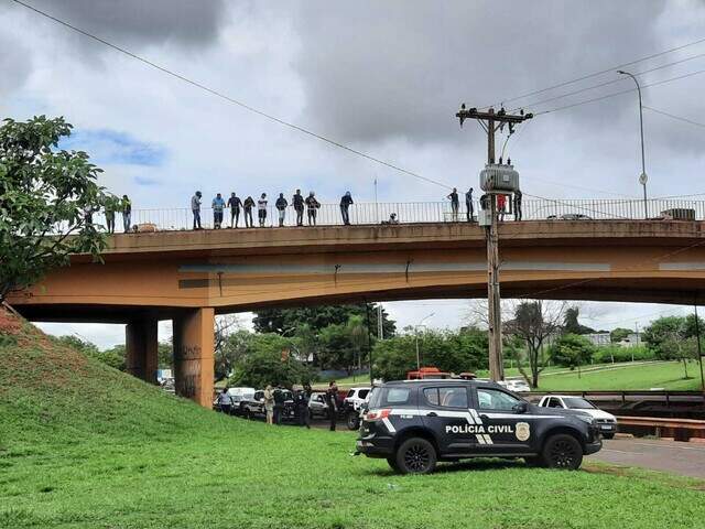 Homem, ainda não identificado, morreu ao cair do pontilhão das avenidas Ernesto Geisel com a Salgado Filho, no Bairro Jóquei Clube, na manhã desta terça-feira (5), em Campo Grande. Um carro, modelo Peugeot, que passava no momento pelo local passou por cima do corpo.