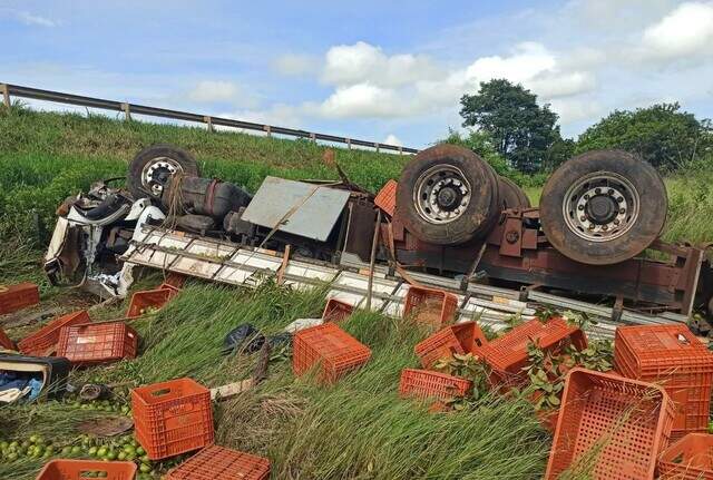 Antônio Grequi Germano, de 64 anos, morreu após perder o controle da direção e o caminhão que conduzia tombar às margens da MS-306, em Cassilândia, a 419 km de Campo Grande. O veículo estava carregado com laranjas, que ficaram espalhadas na pista.