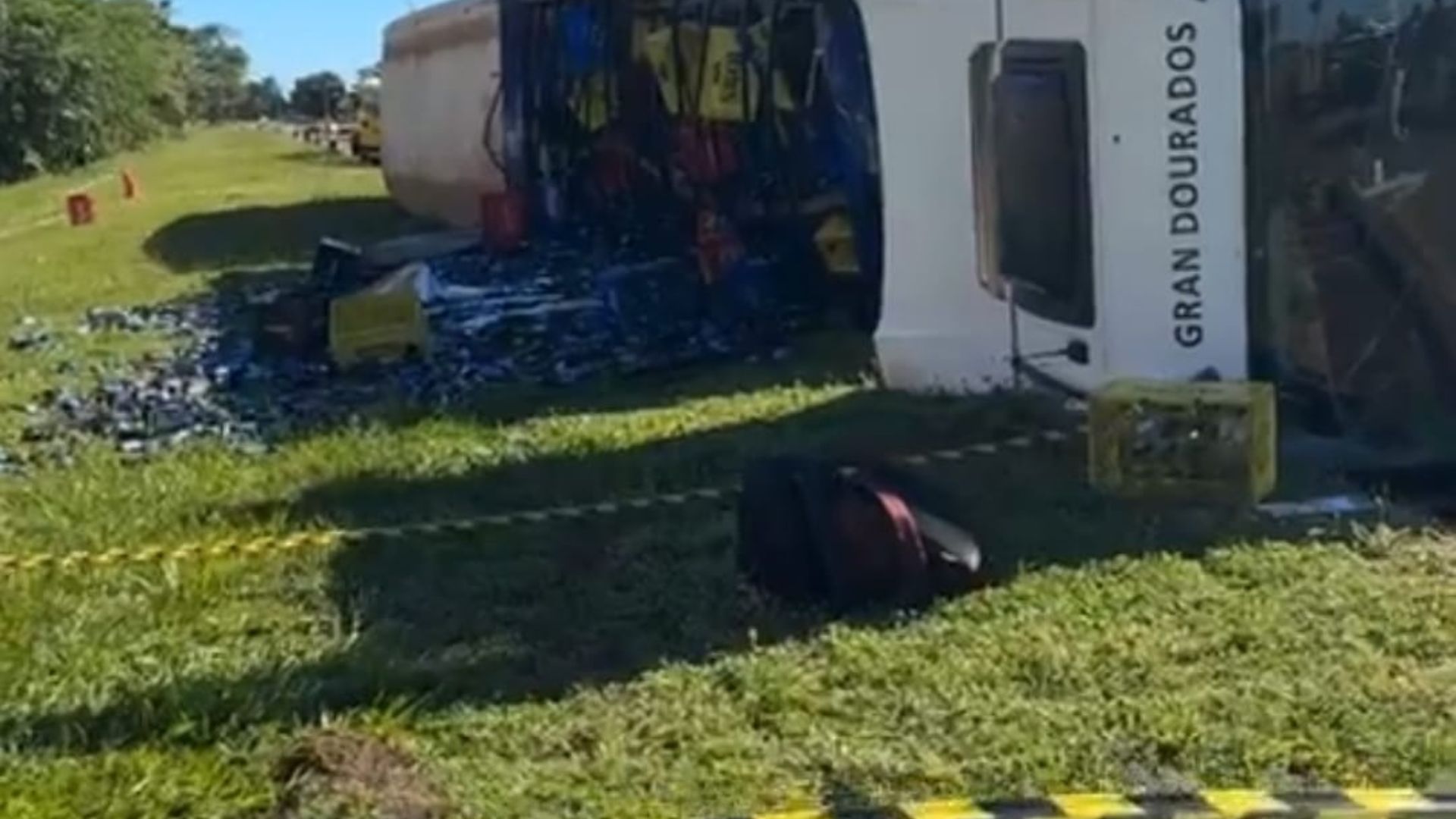 Uma carreta carregada de cerveja tombou e a carga ficou destruída. O acidente aconteceu na manhã desta sexta-feira (26), na BR-267, em Nova Alvorada do Sul, a 120 quilômetros de Campo Grande.