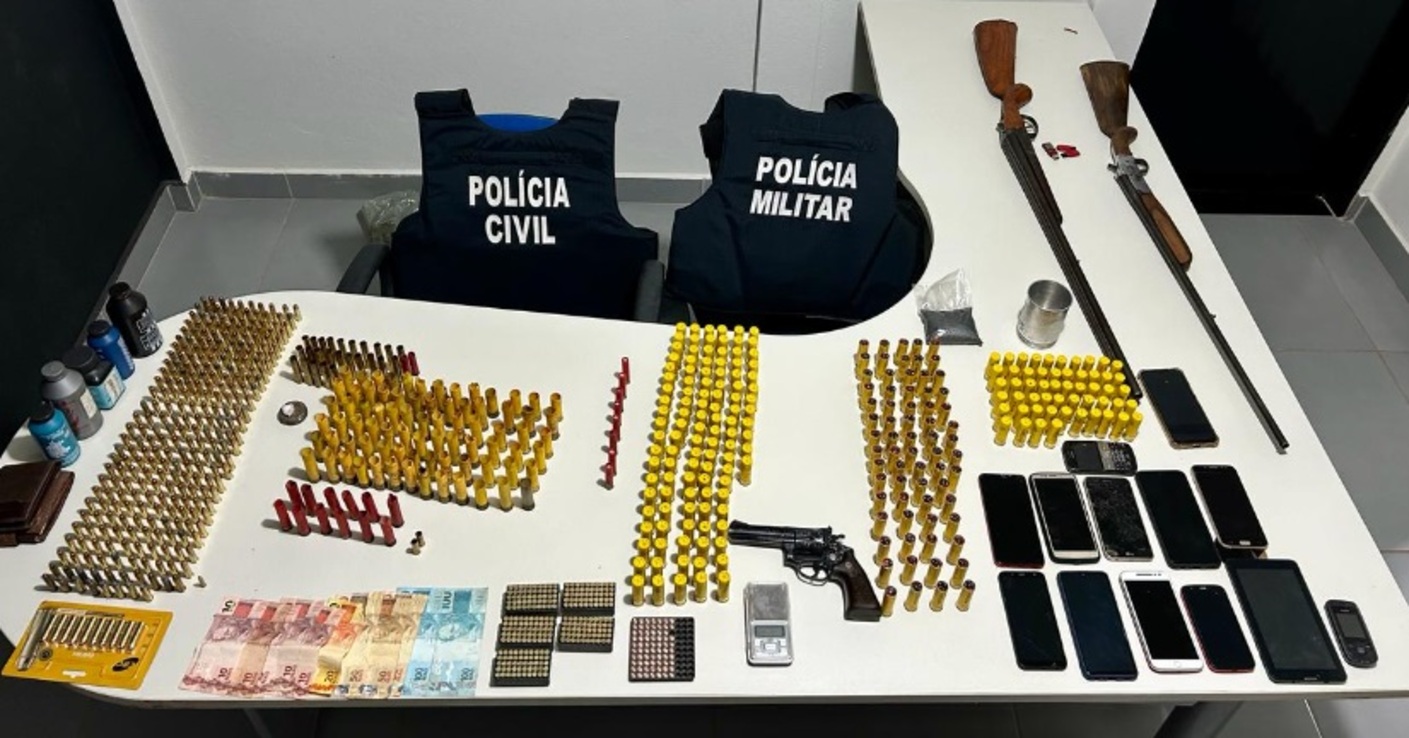 Os objetos foram todos apreendidos e o autor foi preso em flagrante por posse irregular de arma de fogo de uso permitido.