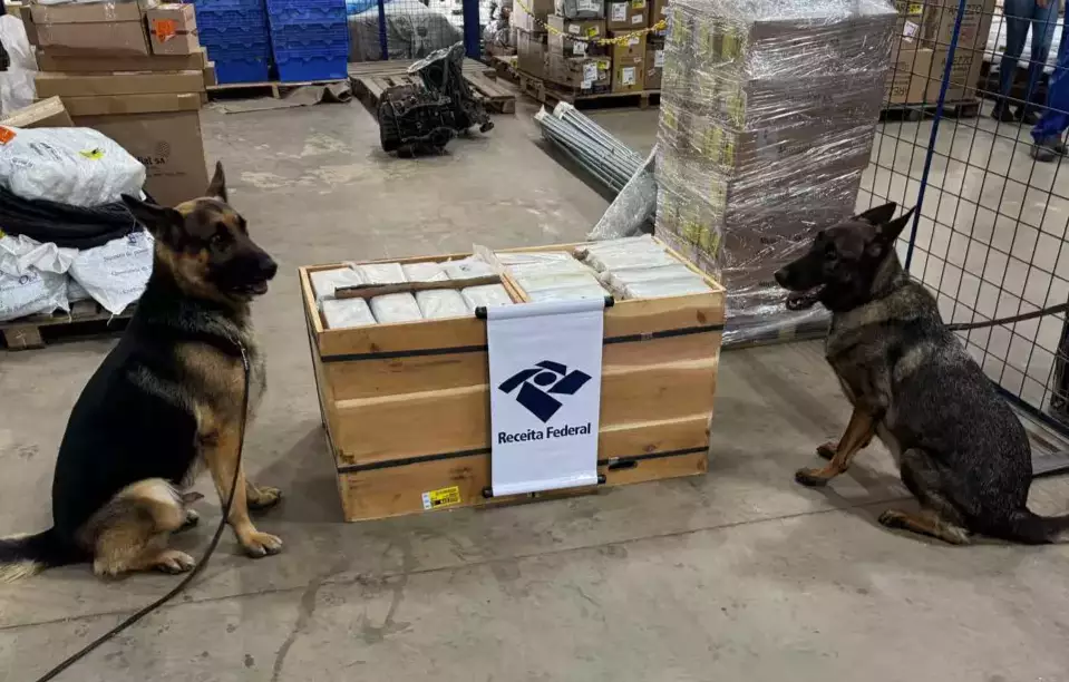A droga foi encontrada pelos cães farejadores Yanko e Iceberg em uma transportadora. Cerca de 16 pacotes de pasta base de cocaína estavam escondidos em caixotes de carcaças de motores, um total de 17 quilos de cocaína.