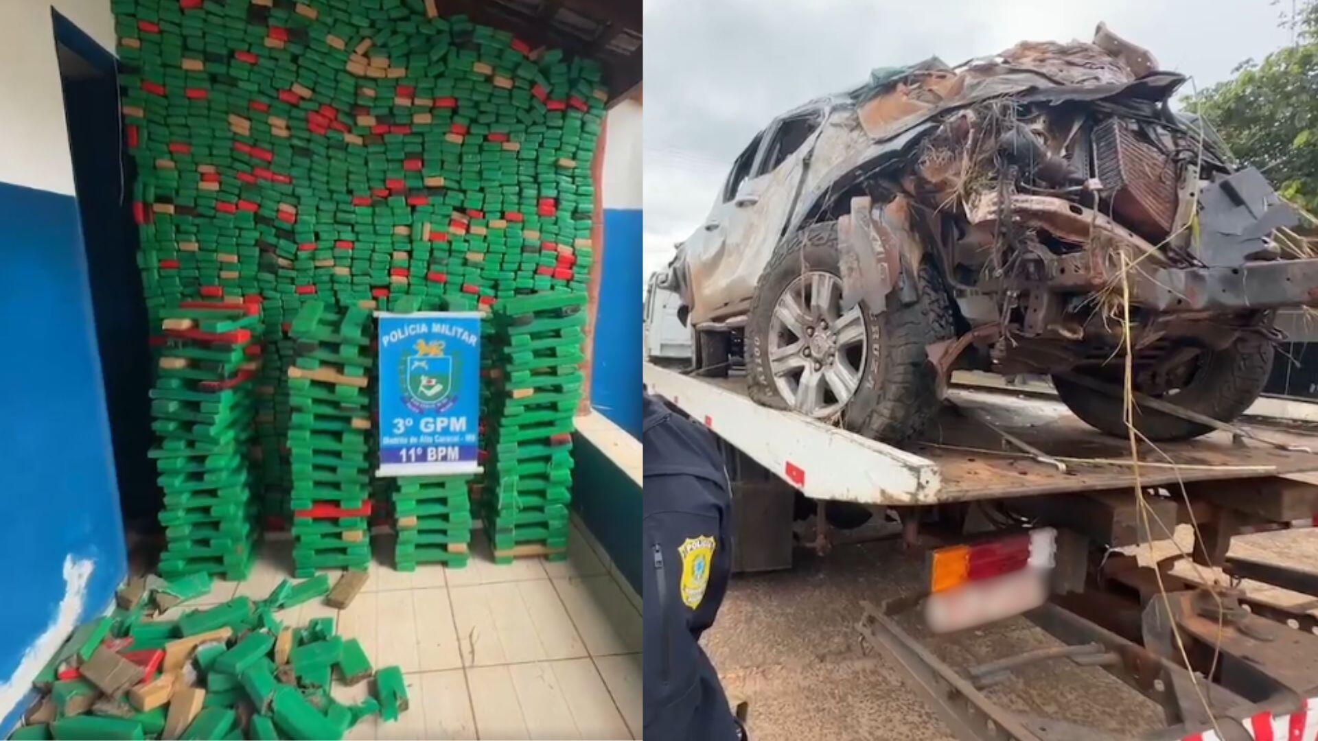 Após o acidente, diversos tabletes de maconha ficaram espalhados na pista e também às margens da rodovia. A pesagem constatou 1.718 tabletes, com peso de 1.715. A droga estava envolvida em fitas adesivas de várias cores.