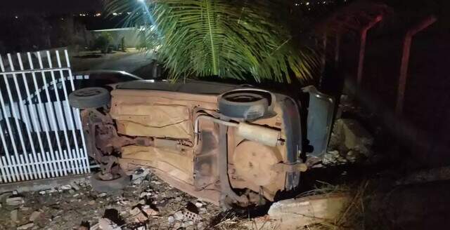 O acidente aconteceu na noite de sábado, mas só foi registrado na madrugada deste domingo (18). Não há informações sobre as circunstâncias. Após sair da pista e capotar, o carro destruiu muro e portão de uma propriedade às margens da rodovia.