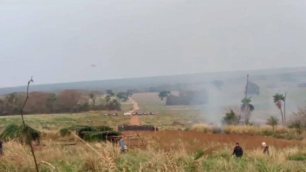 O secretário estadual de Segurança Pública, Antônio Carlos Videira, esclareceu que os 100 policiais militares que estão no local cumprem uma decisão judicial para manter a ordem e segurança na propriedade rural, assim como permitir o ir e vir das pessoas entre a rodovia e a sede da fazenda. (veja nota na íntegra abaixo).