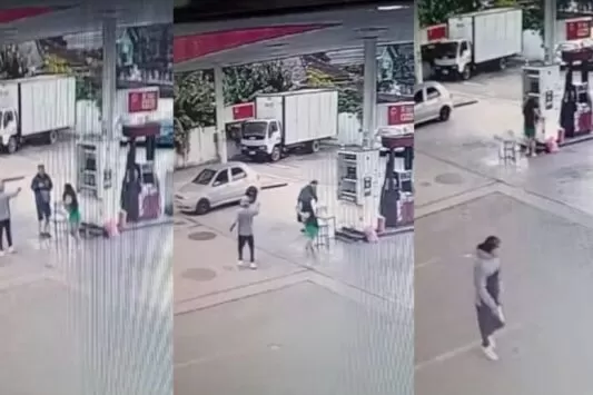 magens de câmeras de segurança registraram o momento da discussão, até que o homem saca uma arma e dispara contra o frentista. O casal fugiu do local. A Polícia Civil está investigando o caso, para identificar os dois.
