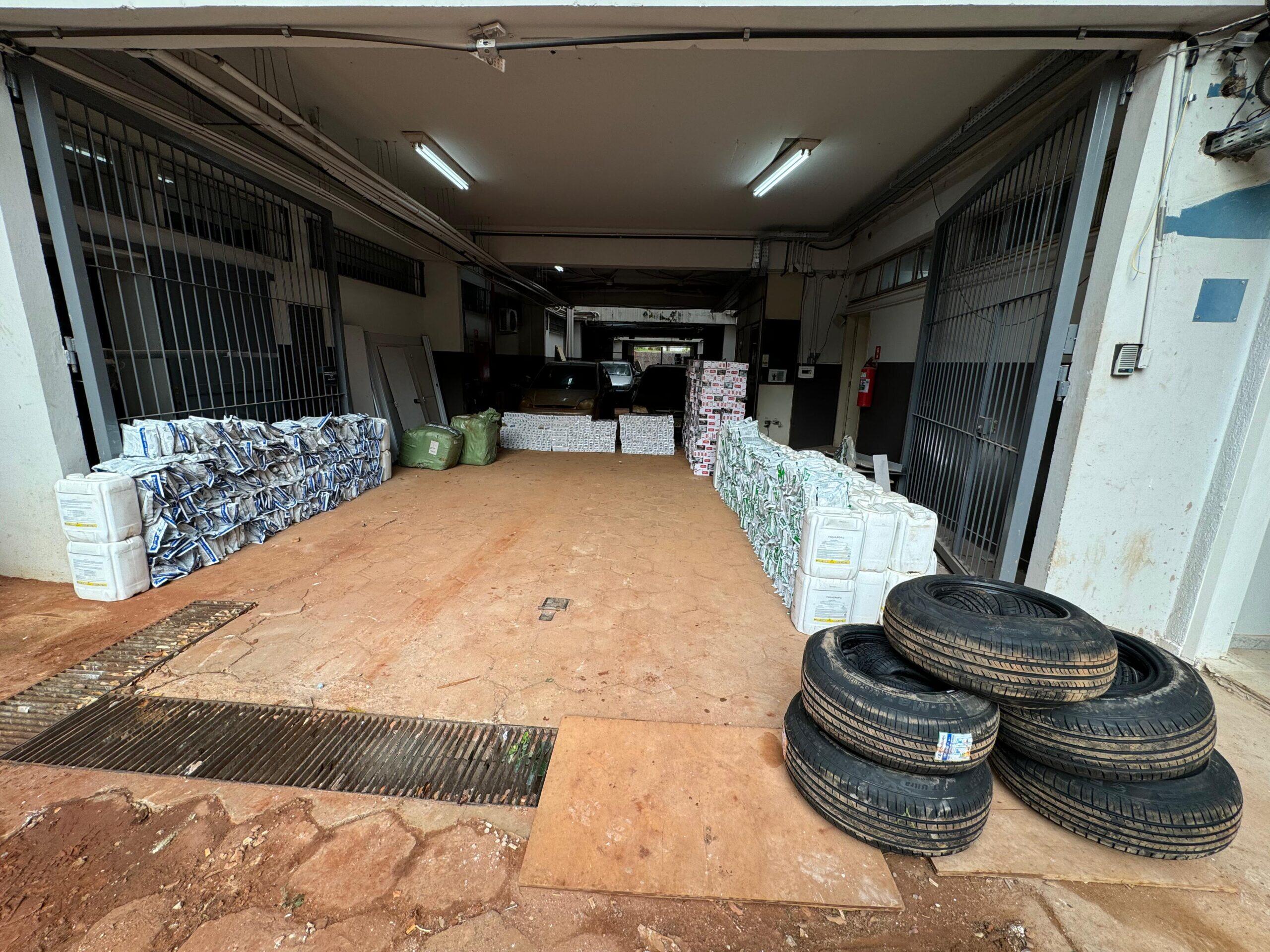 Os policiais se aproximaram do imóvel e conseguiram identificar os veículos mencionados, todos com porta-malas aberto e lotados de pacotes de cigarros. A equipe foi abordada em flagrante.