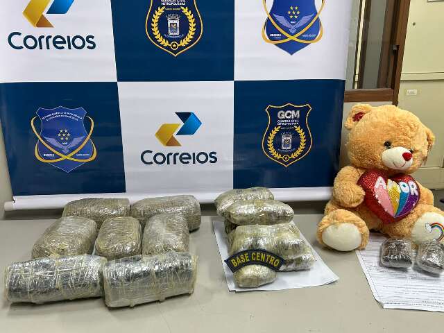 Correios interceptaram encomenda de maconha escondida em ursinho de pelúcia, em flagrante ocorrido nesta quinta-feira (26), em Campo Grande. Ao todo, foram apreendidas seis caixas com a droga.