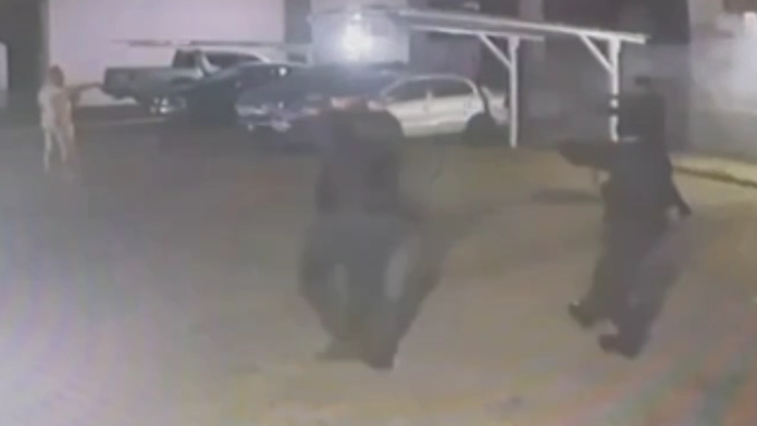Conforme imagens de câmeras de segurança do local, nos fundos do condomínio, foi dada voz de abordagem, mas ele não atendeu aos comandos de colocar as mãos na cabeça e que ficasse de costas para a equipe.