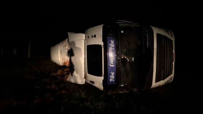 O motorista de uma carreta tombou na MS-134, em Nova Andradina, a 297 quilômetros de Campo Grande, na noite desta quinta-feira (20), após ter uma crise de tosse. O veículo saiu de Diamantino, no Mato Grosso, e tinha como destino Itapoá, em Santa Catarina.