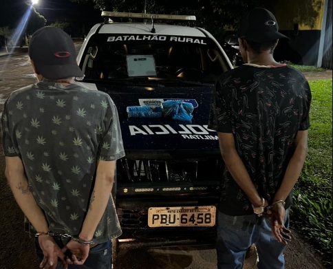 Dois jovens foram presos na madrugada desta quinta-feira(27) após serem flagrados com cerca de 1,5kg de maconha e duas porções de substância análoga a cocaína. Os meliantes de 20 e 22 anos estavam em um chevrolet Prisma com placas de Itanhangá-MT e trafegavam em alta velocidade por uma estrada vicinal do município de São Gabriel do Oeste, conhecida como “reta velha”, o que chamou atenção da equipe de Policia Militar Rural que fazia rondas pela região. foi dado ordem de parada, porém não foi obedecida pelo condutor. Imediatamente a equipe policial deu inicio ao acompanhamento tático do veículo, após alguns quilômetros de perseguição, o condutor, vendo que não teria como escapar, parou o veículo.