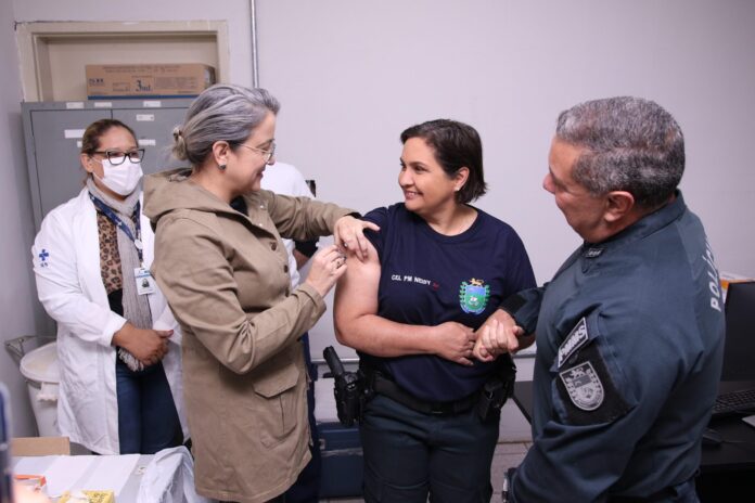 A Secretaria Municipal de Saúde (SESAU) de Campo Grande, em parceria com a Polícia Militar de Mato Grosso do Sul (PMMS), por meio da Diretoria de Saúde da PM (DSAU), realiza nesta quinta-feira (29), mais uma ação de vacinação contra a gripe, direcionada aos policiais militares. A ação reforça o compromisso conjunto de proteger quem cuida da população.