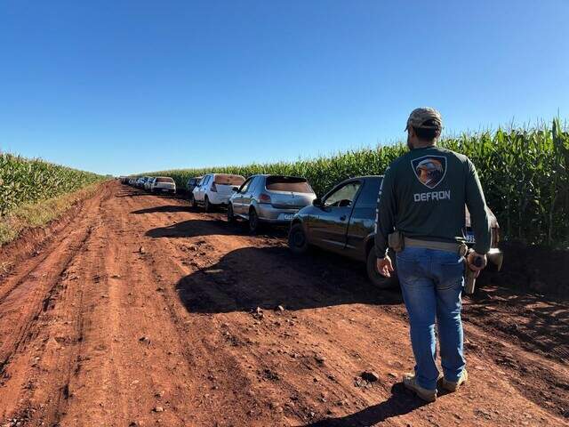 Parte dos carros foi abandonada, e os motoristas escaparam a pé por lavouras e áreas de mata.