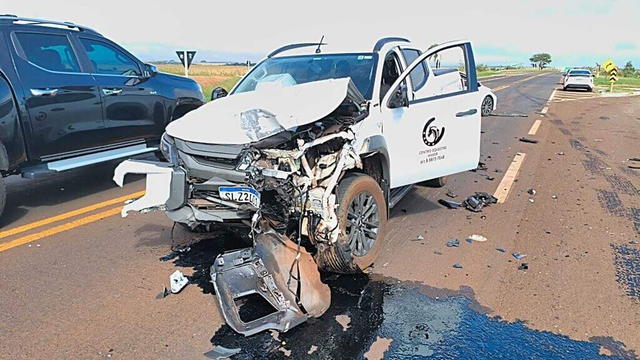 A caminhonete teve a frente completamente destruída e parou no meio da pista. Apesar dos danos no veículo, o motorista não sofreu ferimentos, conforme consta no boletim de ocorrência.
