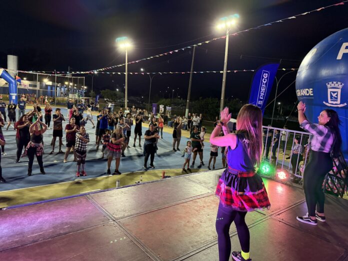 O Centro Olímpico da Vila Nasser foi palco de reforço dos laços comunitários, na noite desta quinta-feira (10/7), com mais uma edição do Circuito Movimenta CG Julino, promovido pela Prefeitura de Campo Grande, por meio da Fundação Municipal de Esportes (Funesp). O evento reuniu moradores da região para uma noite de aulas temáticas de Ritmos, FitDance, Zumba e RitBox, em clima de festa julina, com sorteio de brindes e muita animação.