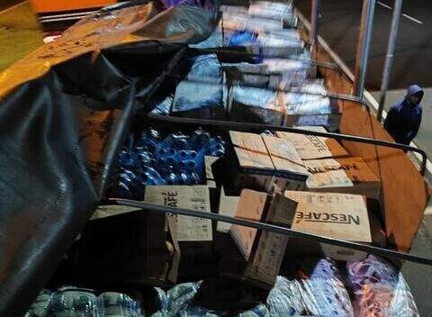 De acordo com a nota fiscal apresentada, a carga incluía 6.450 kg de coxa de frango, 674 kg de produtos como salsicha, linguiça, mortadela e espinhaço de porco, além de 1.160 kg de margarina e outros itens não perecíveis. Os dois ocupantes do caminhão informaram que saíram do Paraguai com destino a Foz do Iguaçu (PR) para buscar os alimentos, e que o objetivo era levá-los de volta até Curuguaty, no país vizinho.
