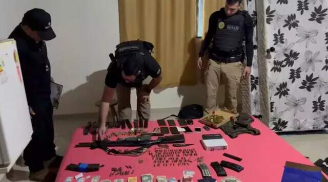 Com ele, foram apreendidos armas de grosso calibre, munições, joias, dinheiro em três moedas e duas caminhonetes de luxo sem documentação.