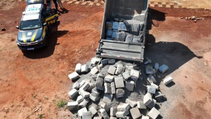 A Polícia Rodoviária Federal (PRF) apreendeu mais de 6 toneladas de maconha na segunda-feira (18) em Dourados (MS). A droga estava escondida em uma carga de brita transportada por um caminhão. O flagrante ocorreu depois que os policiais desconfiaram do veículo, que trafegava em baixa velocidade.