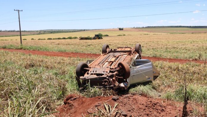 Uma mulher de 40 anos e os dois filhos, ambos adolescentes, ficaram feridos após o carro em que a família estava capotar, na manhã desta sexta-feira (21), na BR-262, saída para Três Lagoas, em Campo Grande.