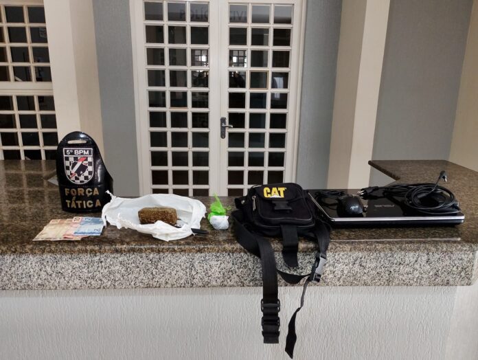 A Polícia Militar, por meio da equipe da Força Tática do 5º Batalhão, prendeu em flagrante um jovem de 19 anos por tráfico de drogas na tarde deste sábado (03), no município de Coxim.