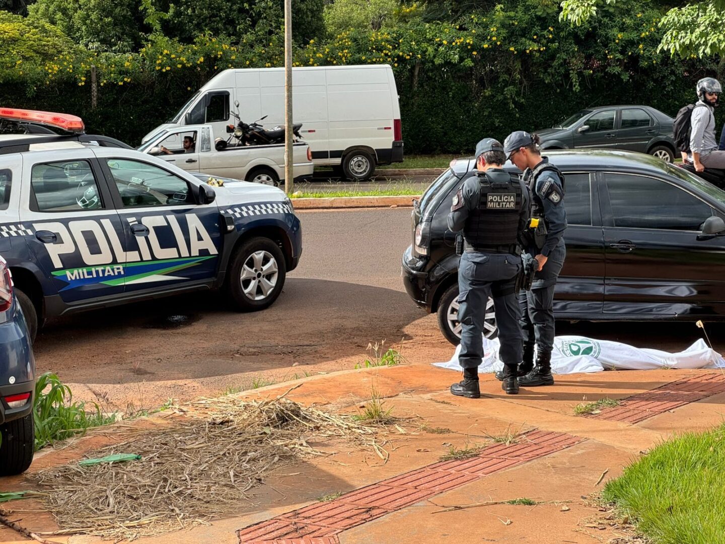 A Polícia Militar isolou a área, interditando a Rua Colômbia, que permanece fechada para o trânsito. A Perícia e a Polícia Civil já estão no local.