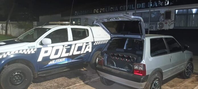 Durante patrulhamento, já ciente das denúncias, a guarnição policial visualizou um Fiat Uno, de cor cinza, na Rua Ayres Penze. Pouco depois, os policiais ouviram novos estouros de rojões e perceberam pessoas correndo em direção ao veículo, que saiu rapidamente do local. Houve acompanhamento tático policial e posteriormente a abordagem.
